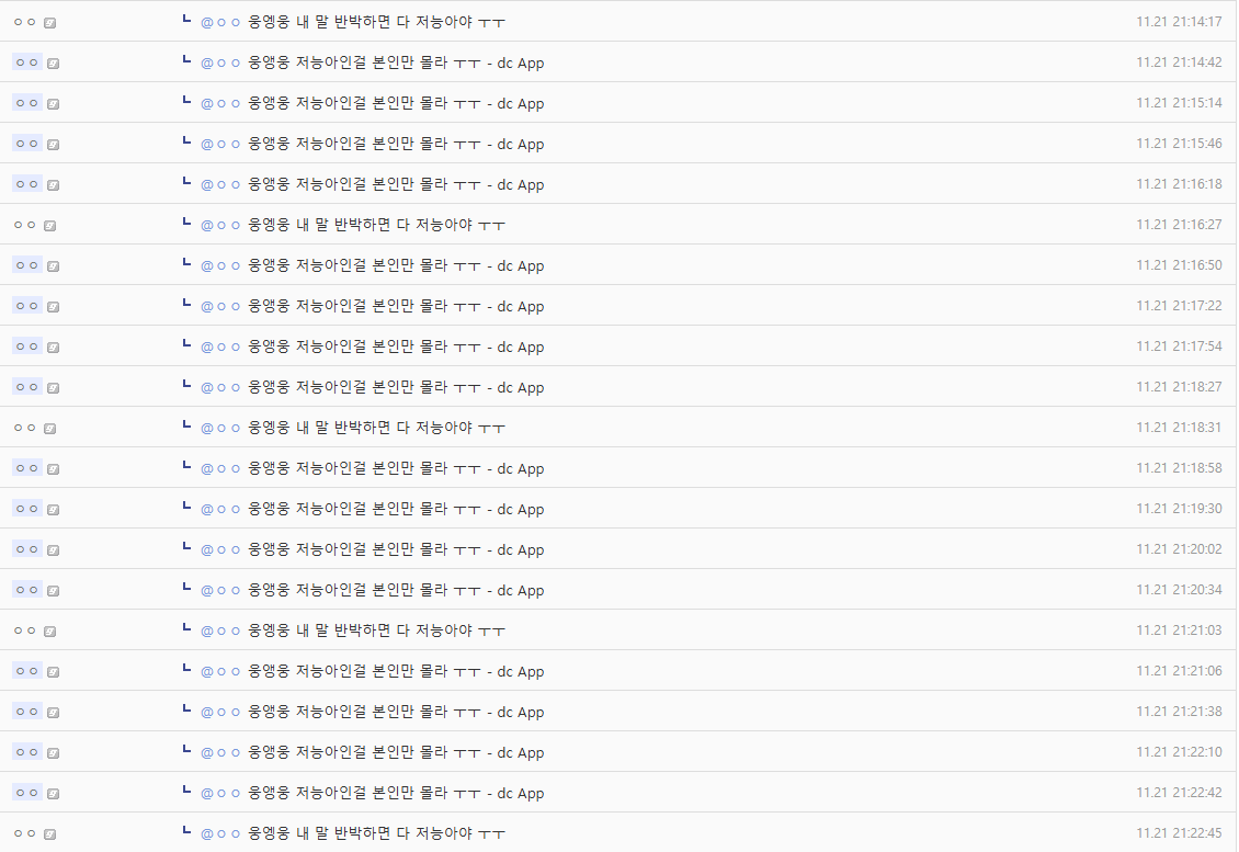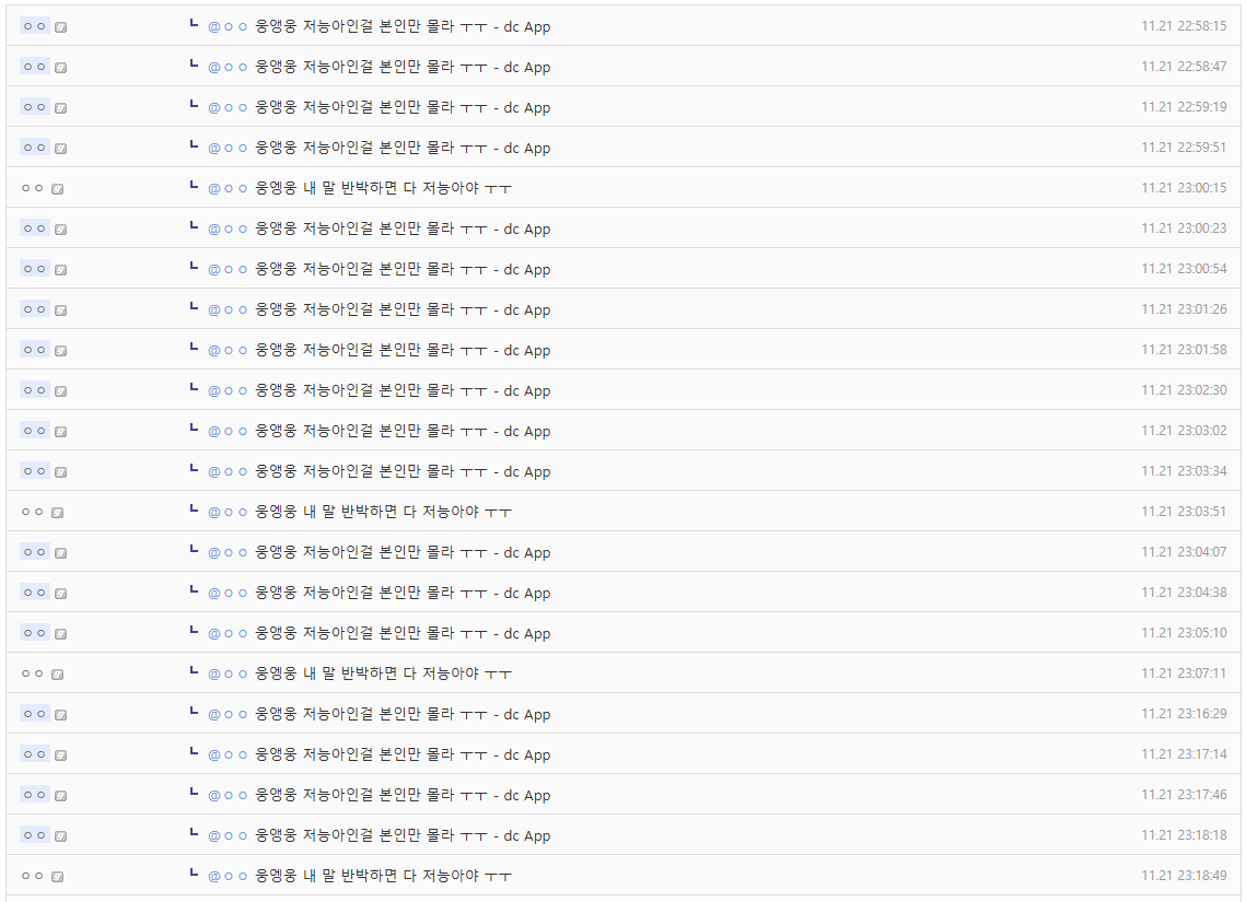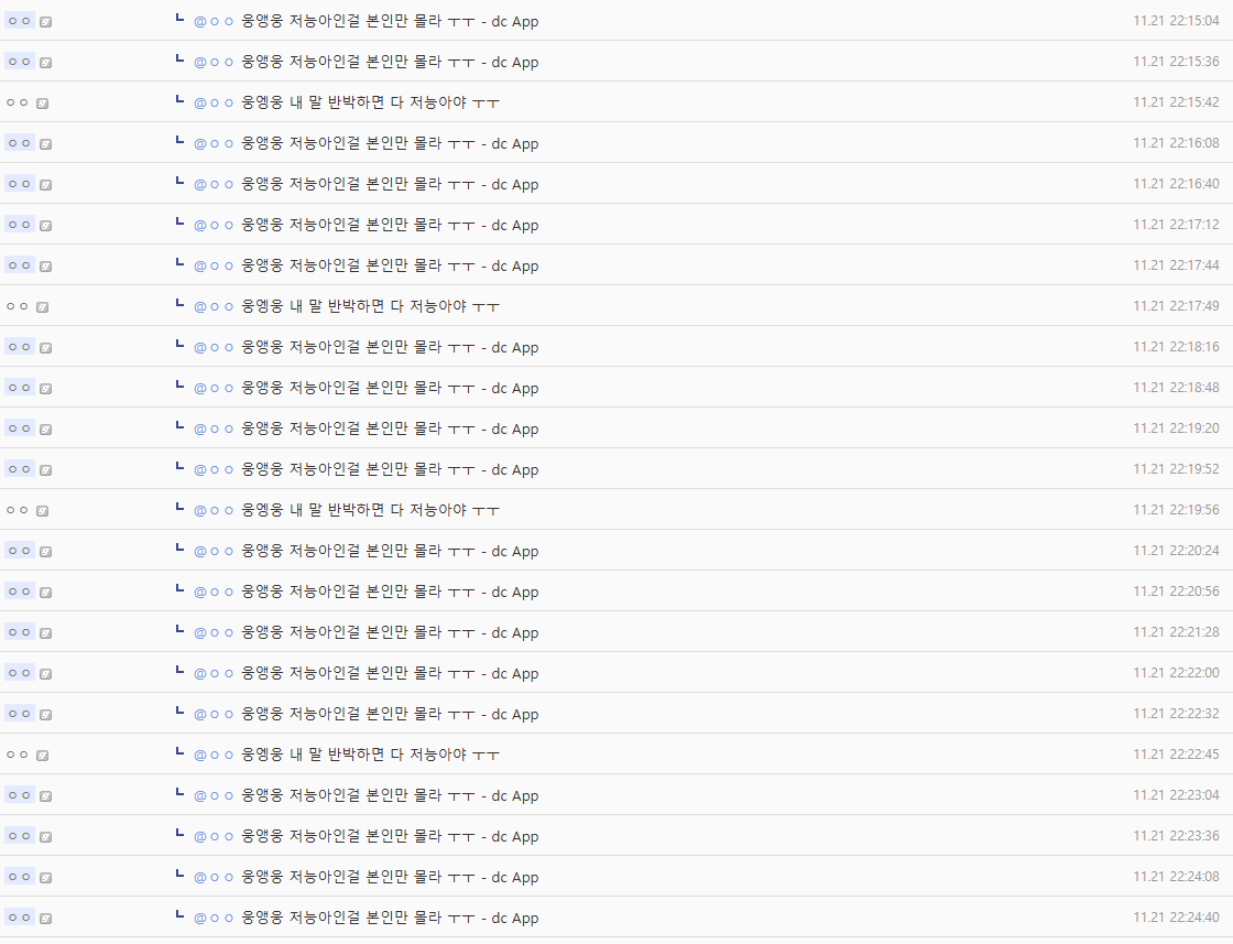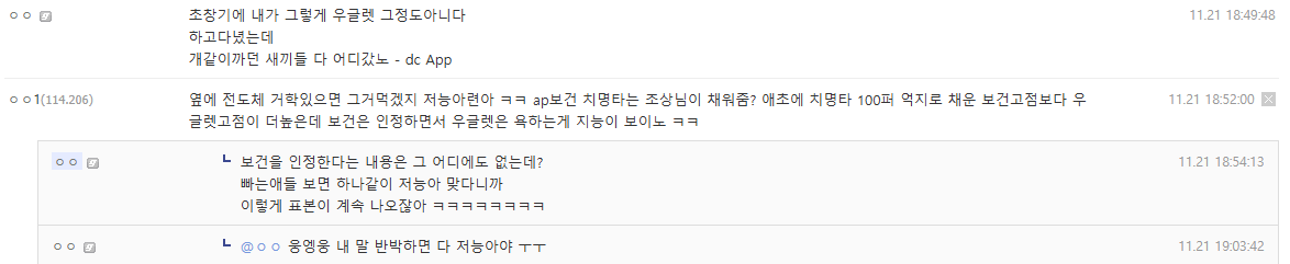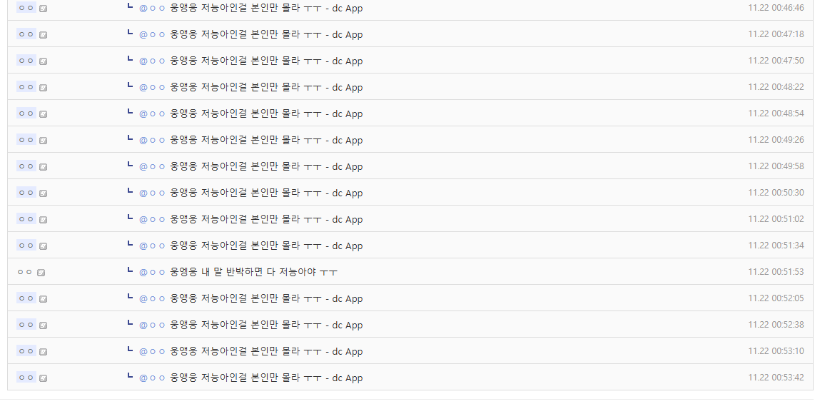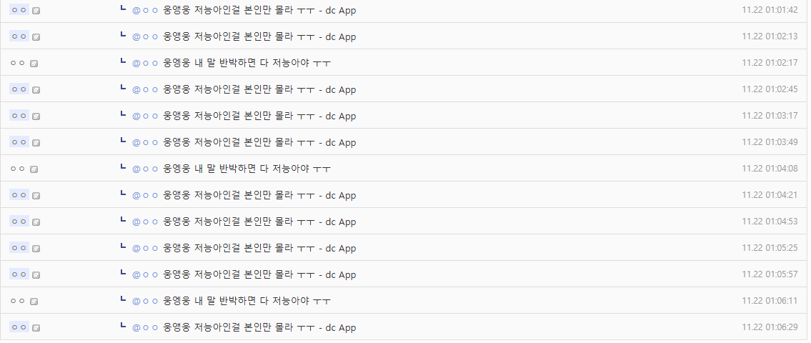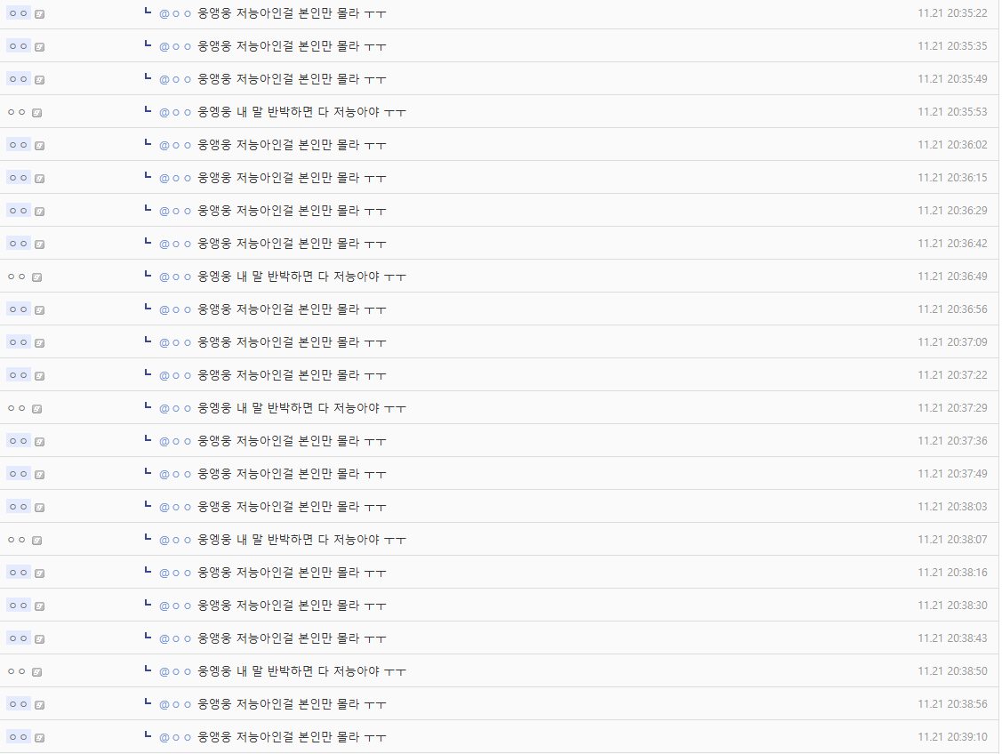 그리고 다른 사람도 다시 "웅앵웅 내 말 반박하면 다 저능아야 ㅜㅜ"로 응수