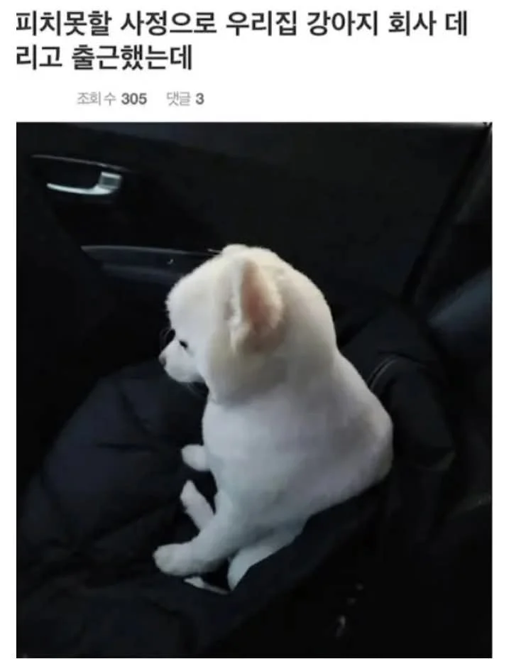 피치못할 사정으로 회사에 강아지 데려간 직원