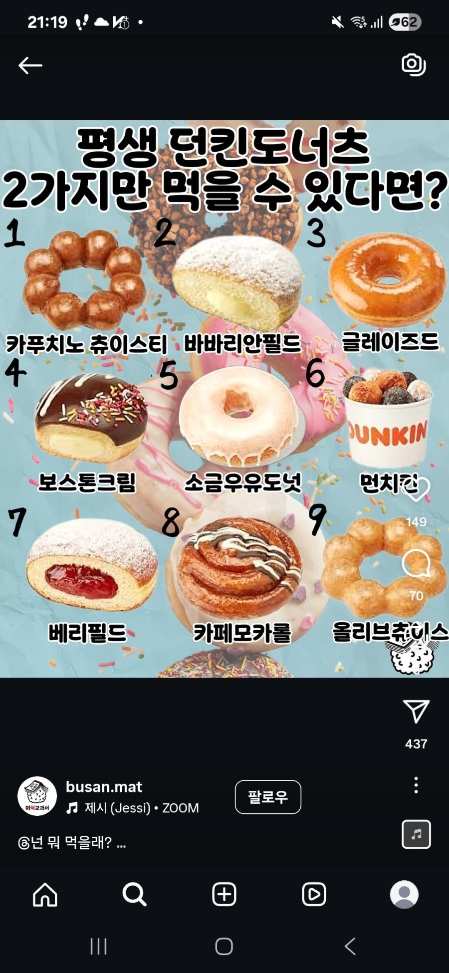평생 던킨도너츠 2가지만 먹을 수 있다면