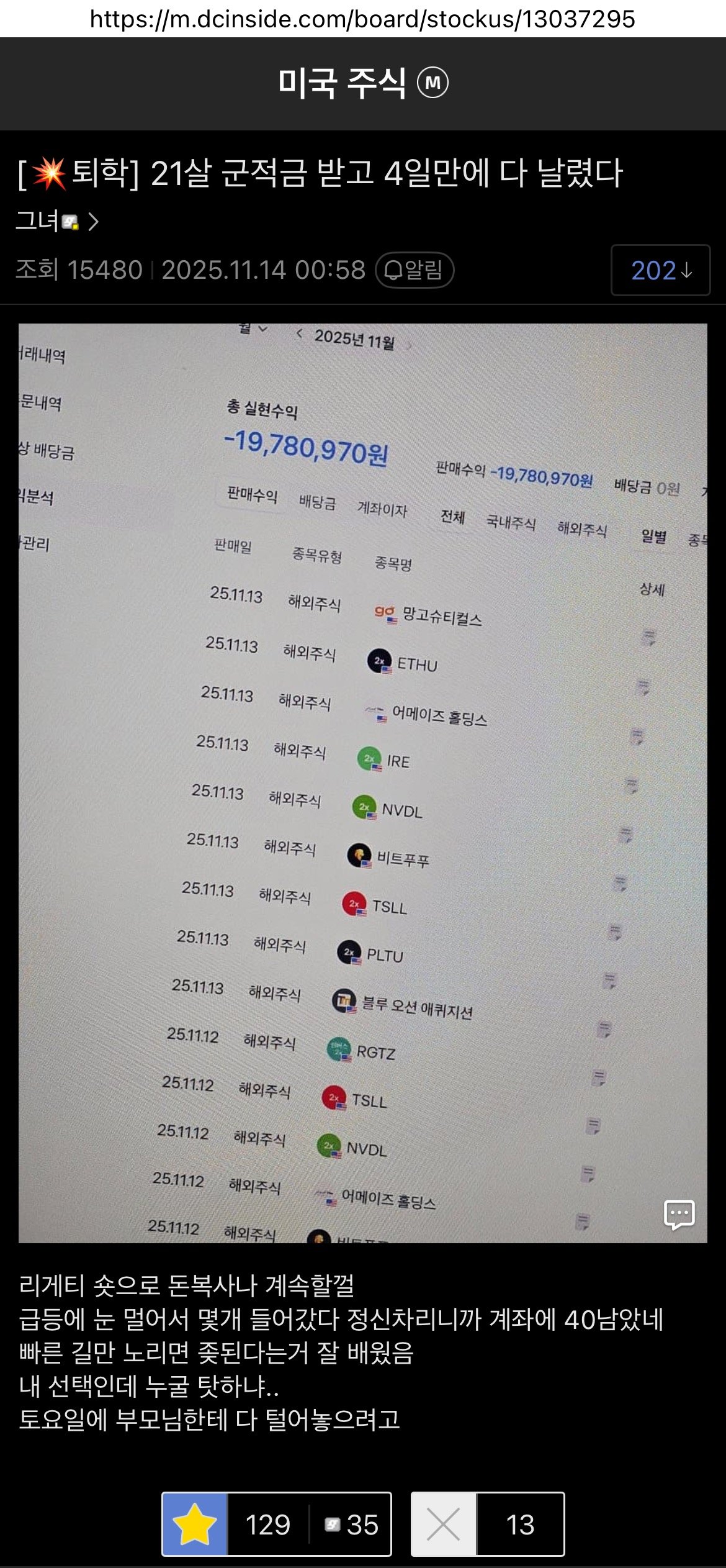 21살 군적금 받고 4일만에 다 날렸다