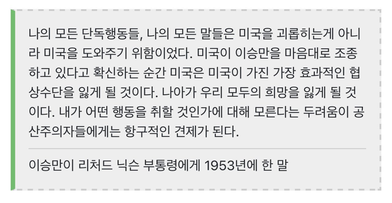 이승만은 미국이 없다면 언제든지 북괴가 다시 쳐들어올거라는 공포가 있었지만