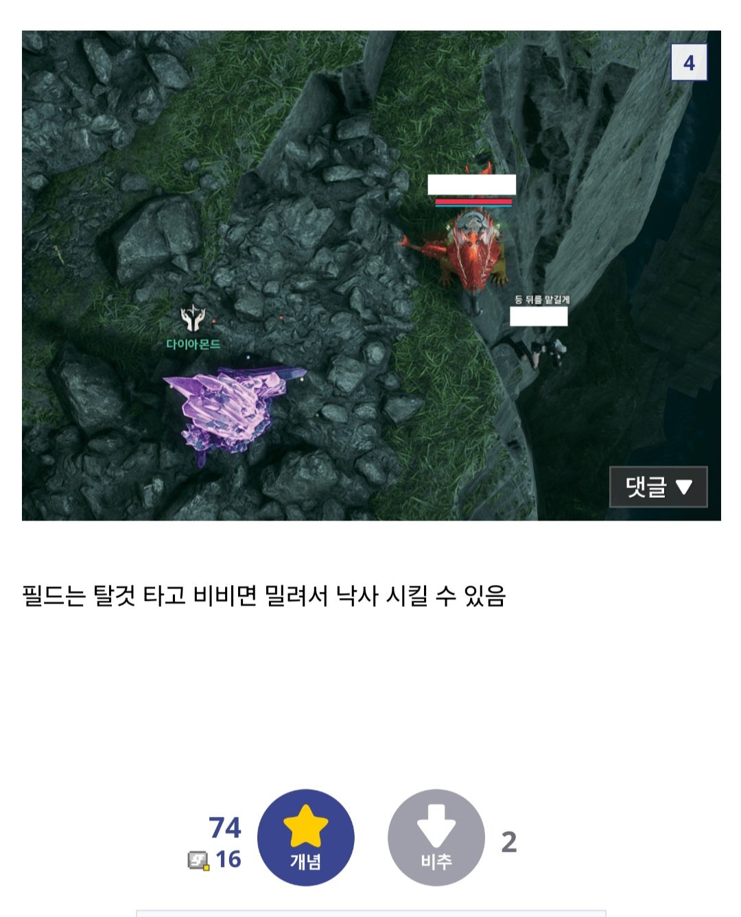 아이온은 캐릭터를 밀수있어서 낙사시키는