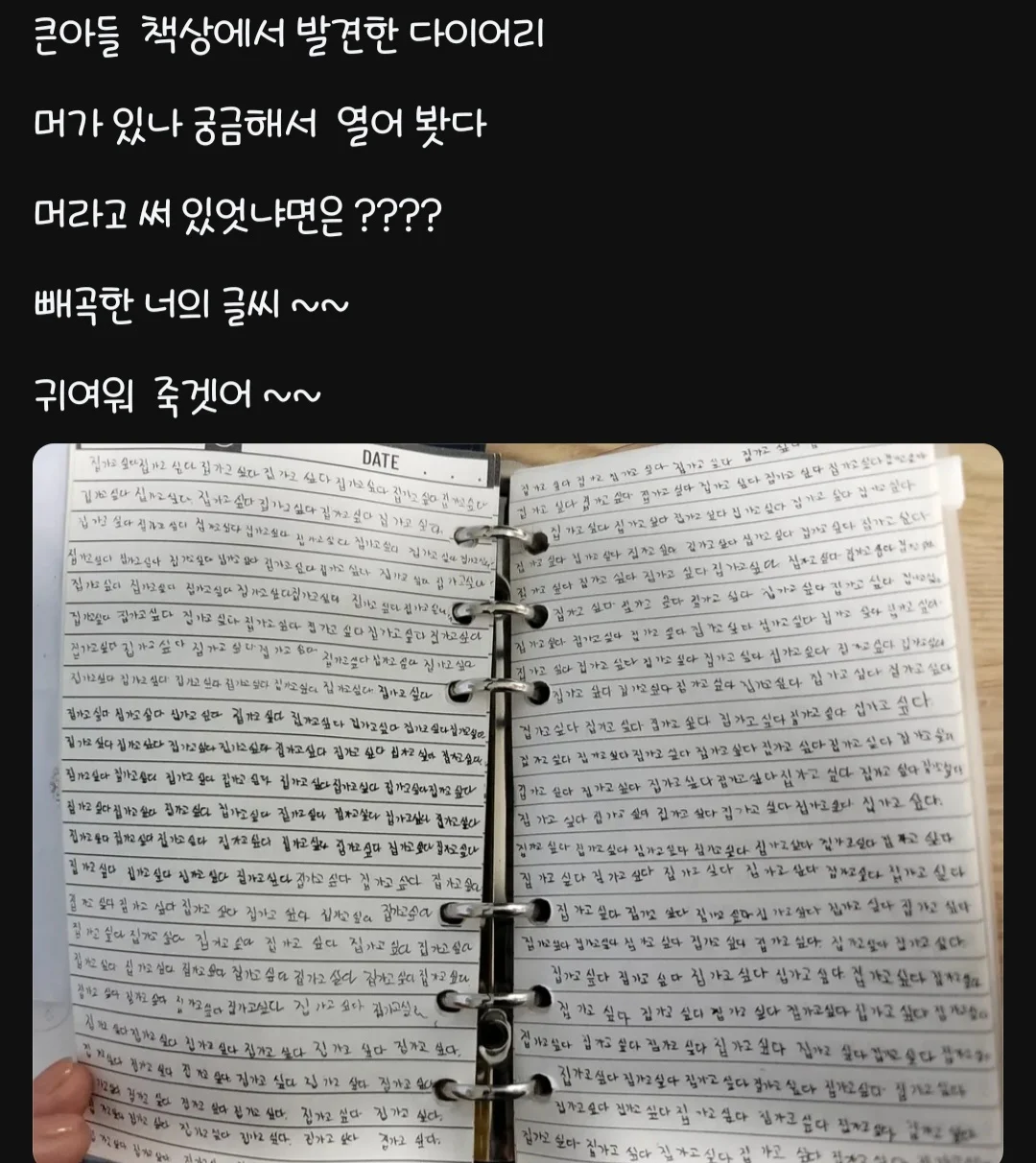 엄마가 귀엽다고 올린 아들 다이어리 내용