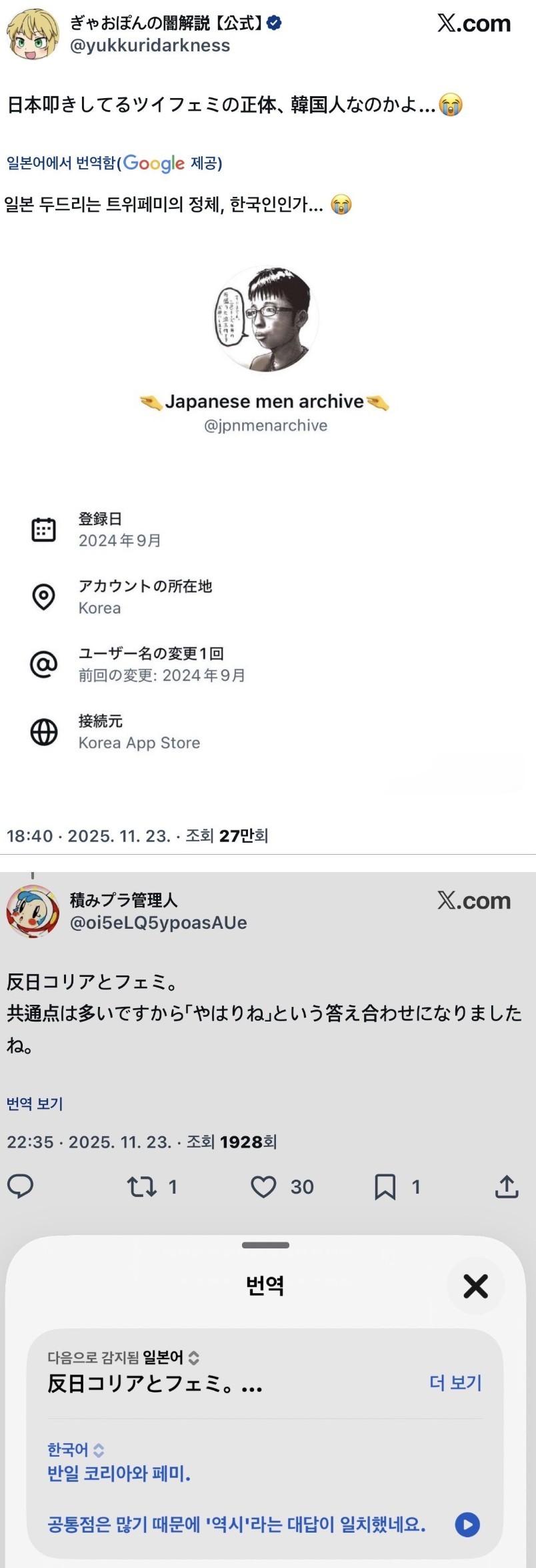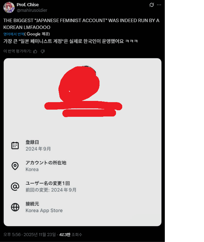 일본 페미계의 큰손계정이 알고보니