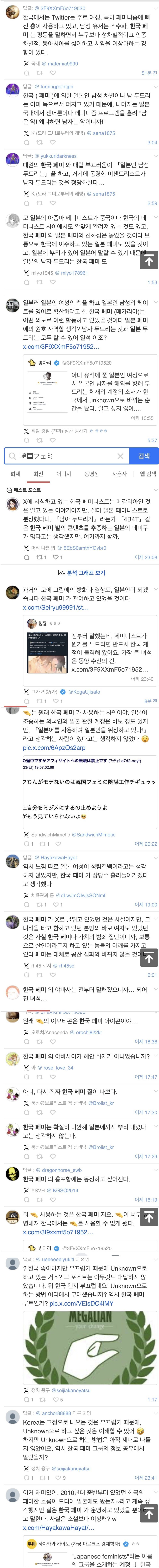 한국인인거 뽀록난 일본페미 계정에 일본 트윗 반응