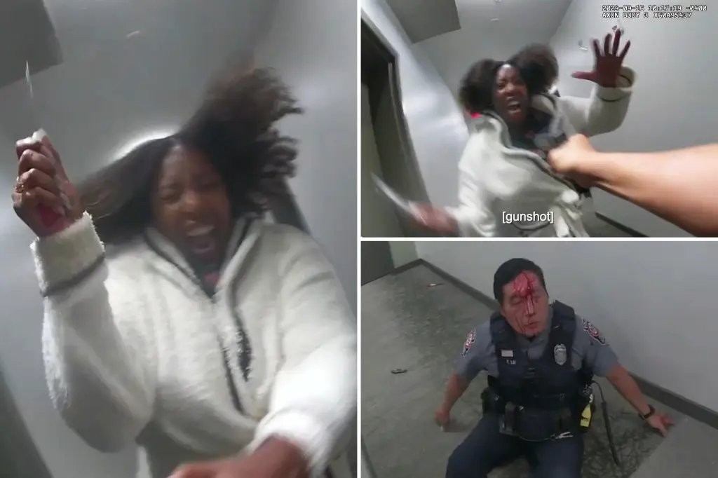 경찰이 상태확인했을뿐인데 갑자기 문열고 나오더니 칼 휘두름.