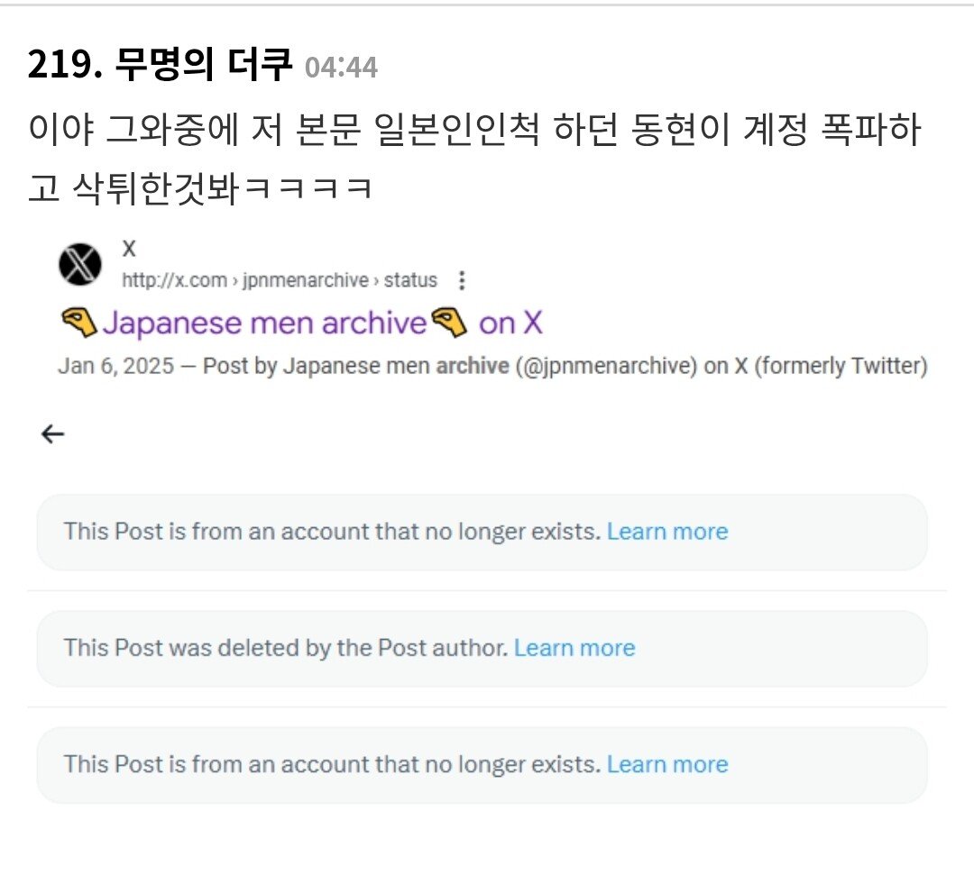 그 와중에 더쿠 아줌마 페미 미친년들이 발작하면서 동현이(여초에서 쓰는 한국남자 멸칭)가 운영하던 계정이라고 날조 선동하는 중 ㅋㅋㅋㅋㅋㅋㅋㅋㅋㅋㅋ