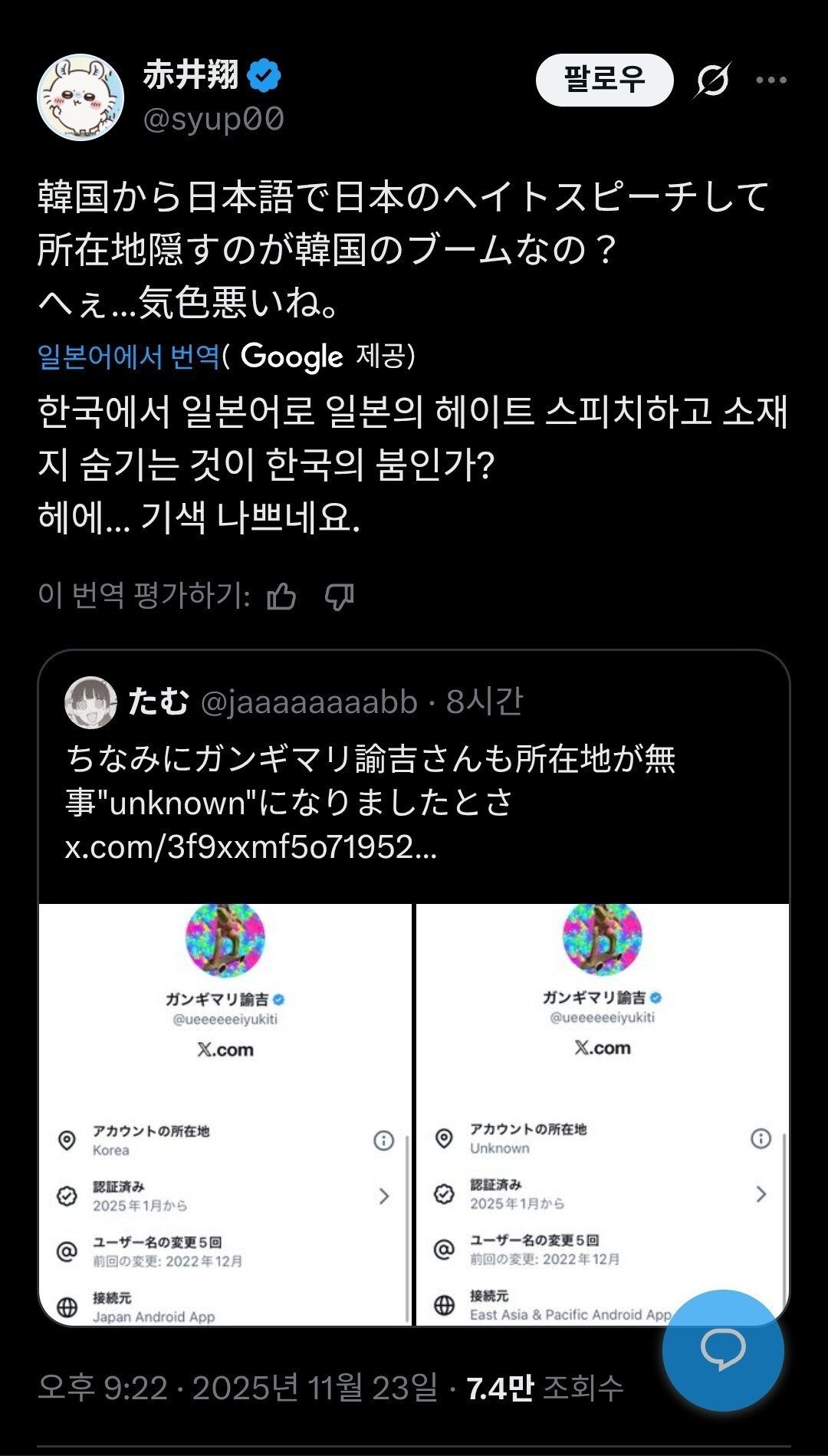 다른 일본 페미 계정들도 한국녀들 운영함 계속 나오는 중