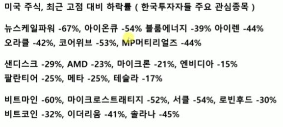 10-11월 고점대비 한국인 좋아하는 미국주식 하락율 근황
