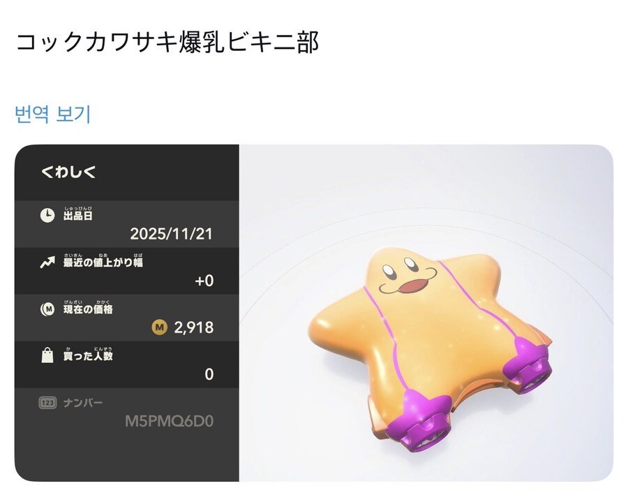 커비 시리즈의 등장인물인 '쿡 카와사키'의 오랜 밈인 '비키니 카와사키'를 모델로 한 머신들이 올라오자
