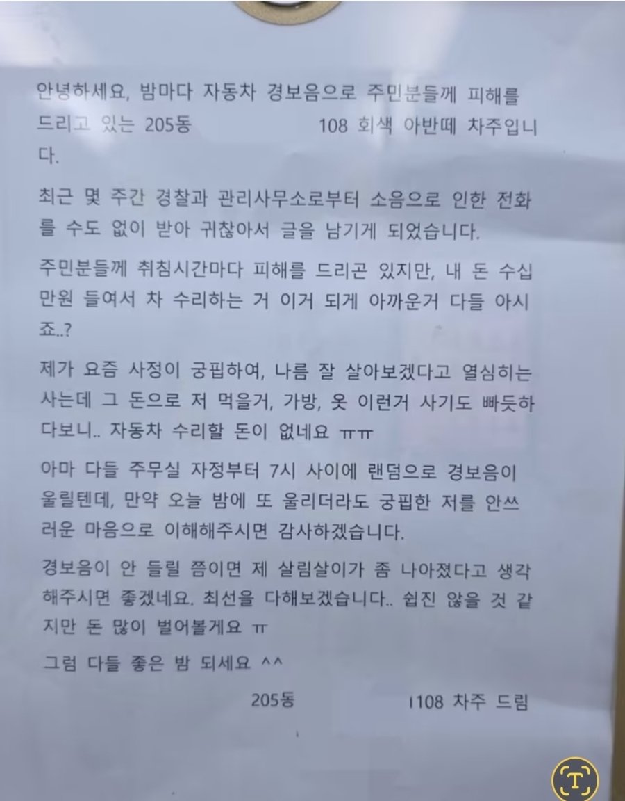 아파트 게시판에 올라온 어느 주민의 글 논란