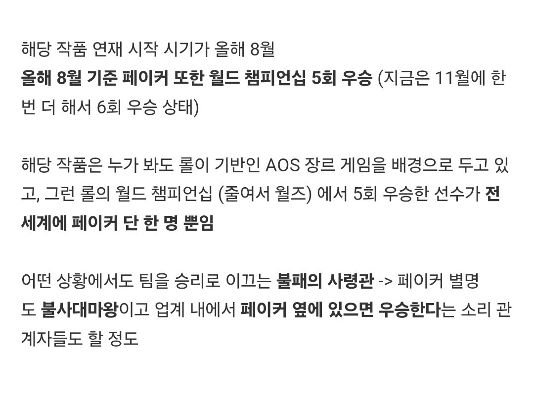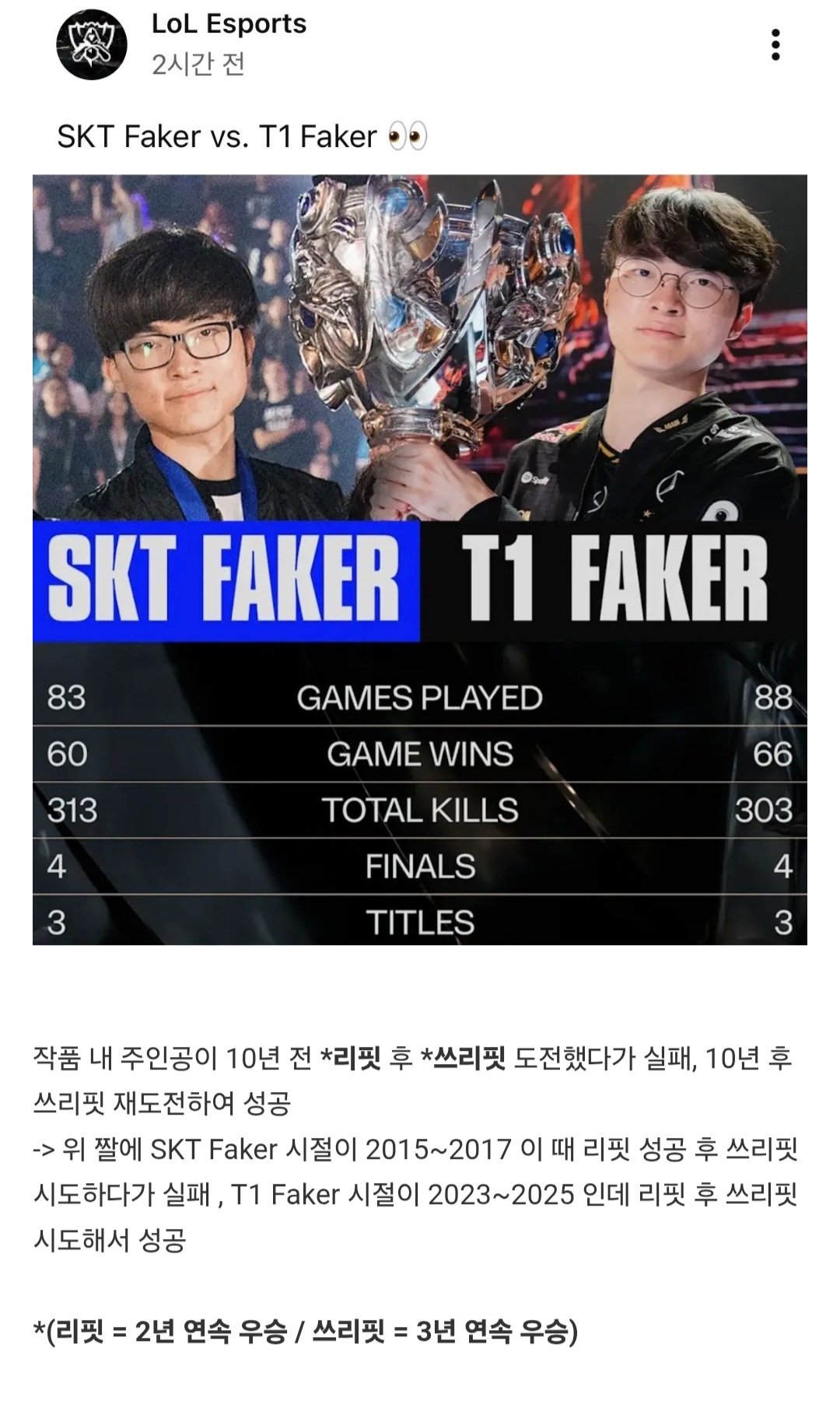 4. 리핏후 쓰리핏 도전하는 유일한 선수인 주인공 - 실제로 페이커가 유일함