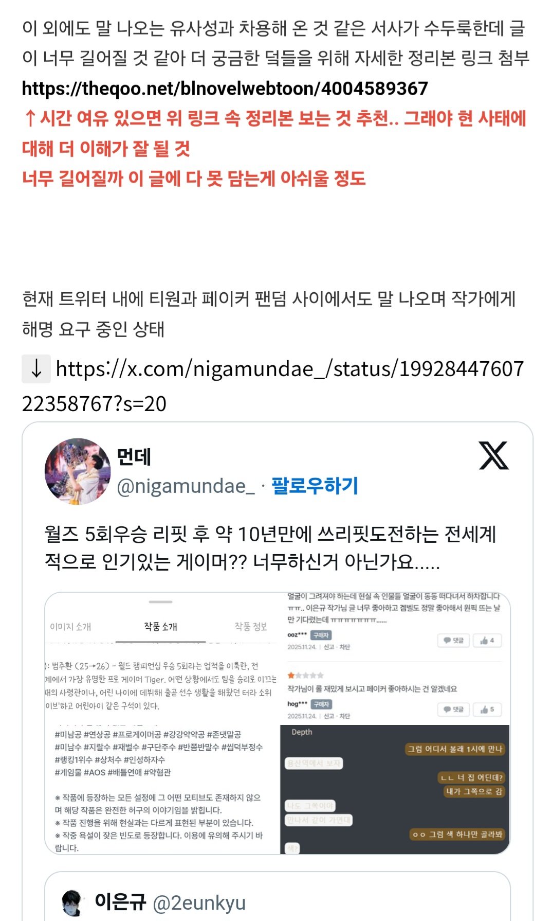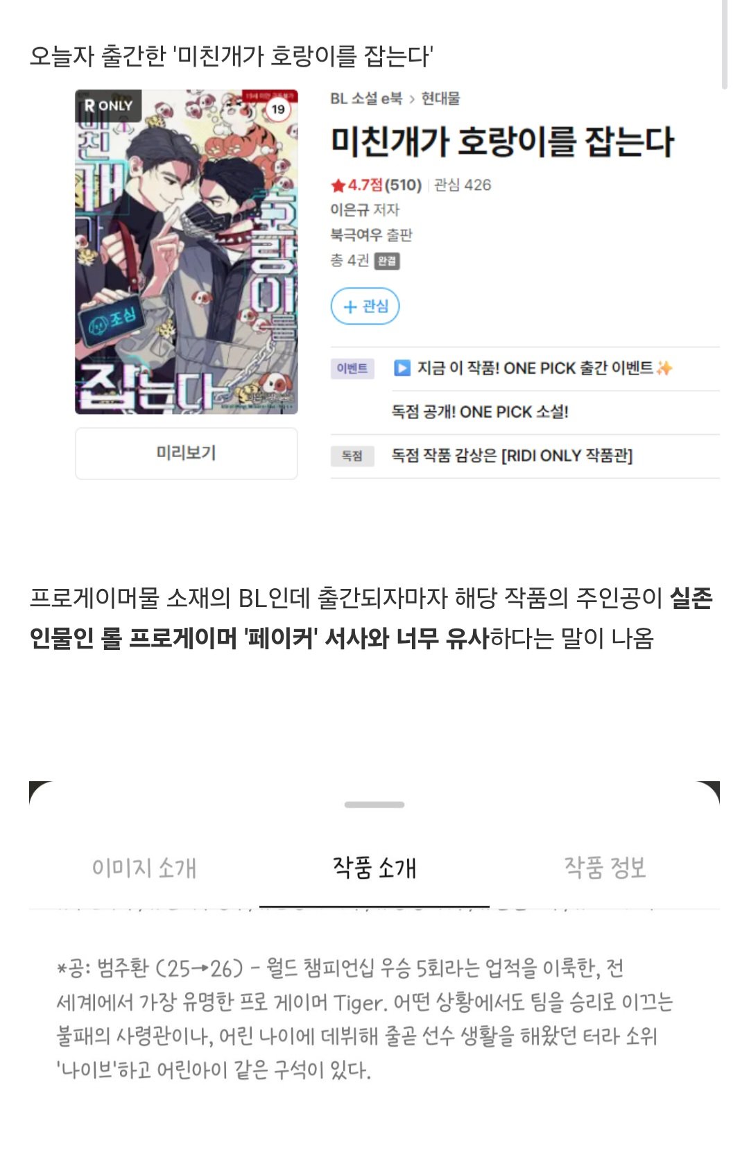 정식 연재되는 페이커 주제로한 19금 BL 알페스 소설 논란
