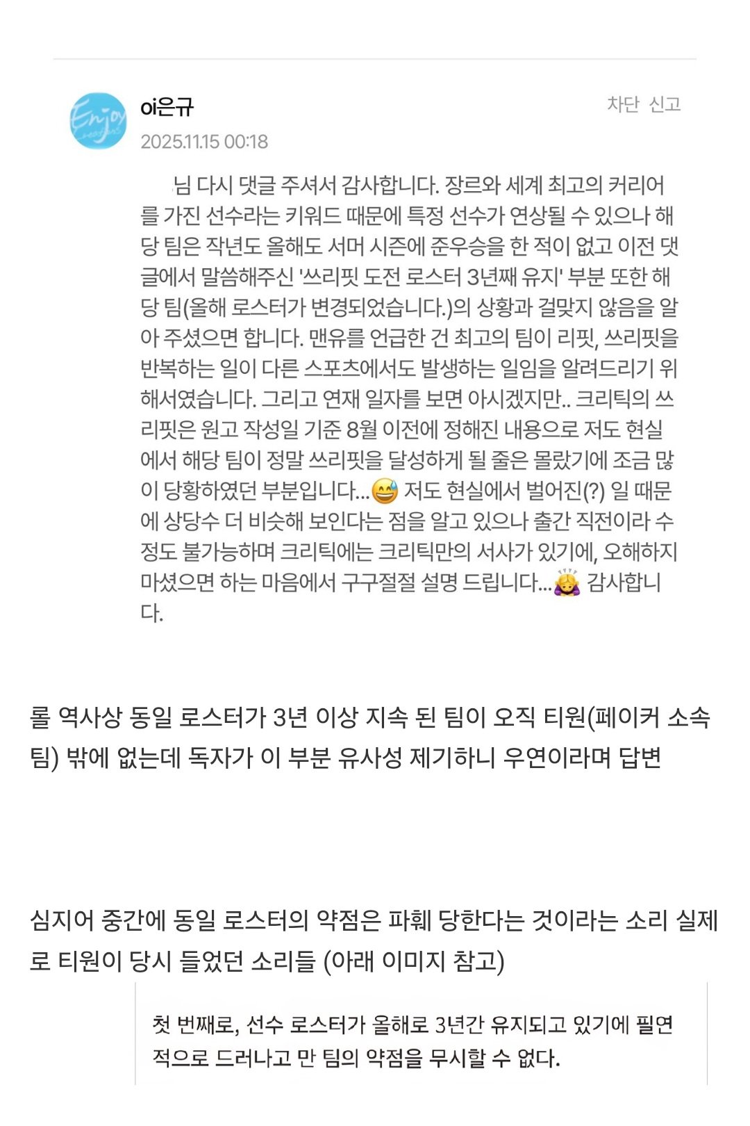 11. 6년전 선수학대한 팀이 있다는 서술 - 19년에 실제로 감코진이 선수 폭행 등 정황에 대한 폭로 터짐 (강제임대사건이랑 같은팀)