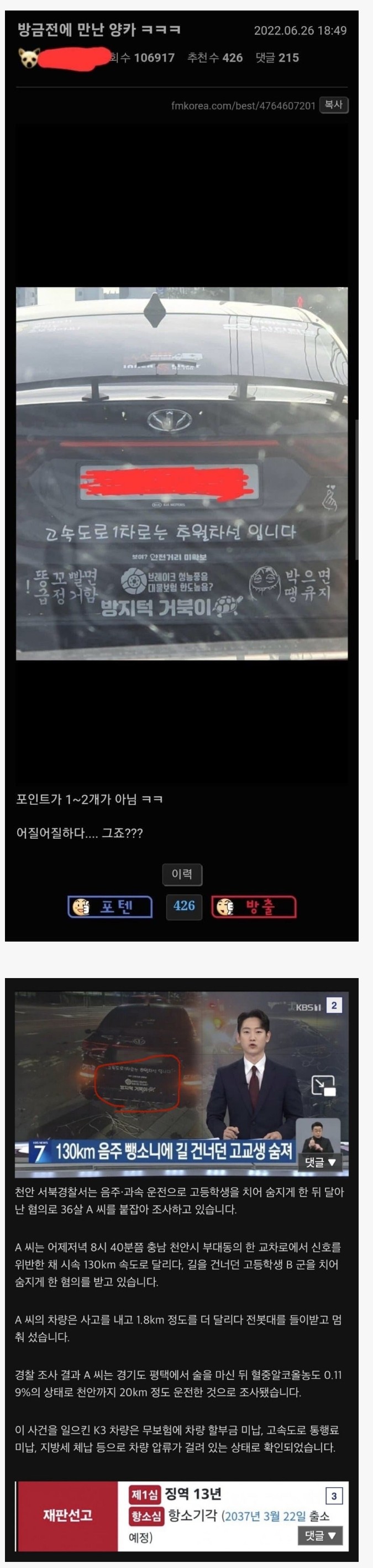 도로위 미래의 살인마를 알아본 펨코인 ㅎㄷㄷ