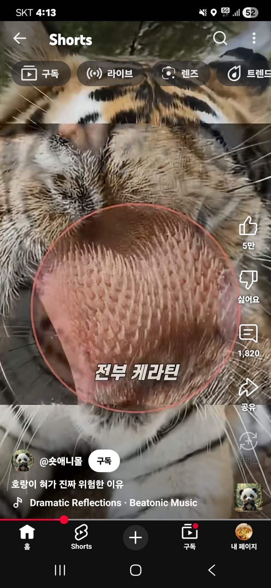 혓바닥 돌기하나하나가 날카로운 손톱수준 이라네요