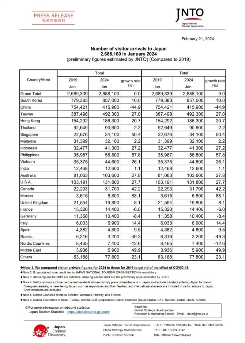 2024년 기준으로 방일 관광객수로는 한국이 1위임