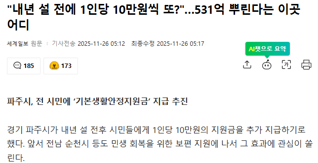 "내년 설 전에 1인당 10만원씩 또?"…531억 뿌린다는곳