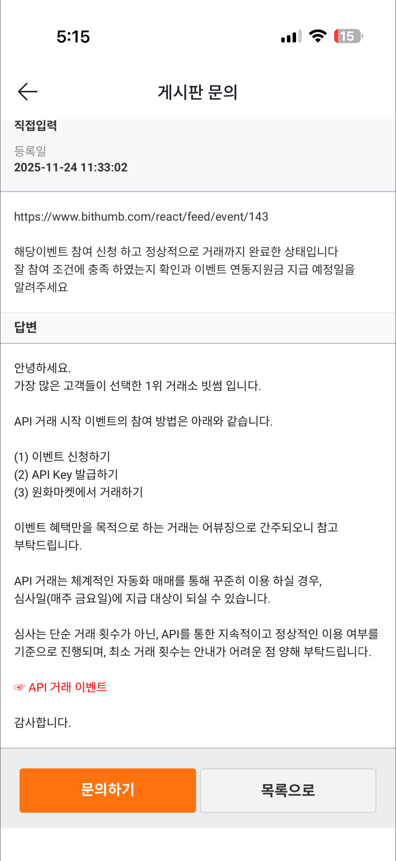 아니 혜택 보고 이벤트 참여하지 그럼 누가 빗썸 API 개발해주려고 봉사활동 하러 옴? ㅋㅋㅋ