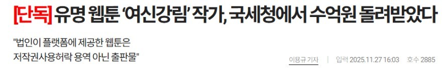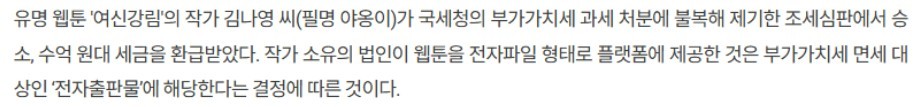 "여신 강림" 야옹이 작가, 국세청에서 수억원 돌려받았다