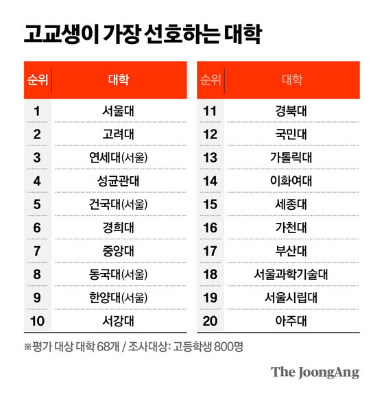 고교생이 가장 선호하는 대학 (중앙일보 조사) 댓글 0 조회 561 2025-11-27 21:07 공룡 Lv.5 게시글 보기 총 게시글: 935개 총 댓글: 0개 입결순 아니고 순수 고등학생 선호도 순위입니다. 참고로 학부모가 가장 선호하는 대학 순위https://www.joongang.co.kr/article/25385480 공룡님의 다른 글 25.11.27 인사동 길거리에서 결혼한 커플 25.11.27 고교생이 가장 선호하는 대학 (중앙일보 조사) 25.11.27 지금보면 놀라운 50년전 서울풍경 25.11.27 "젠슨황 학폭 터졌나요?"