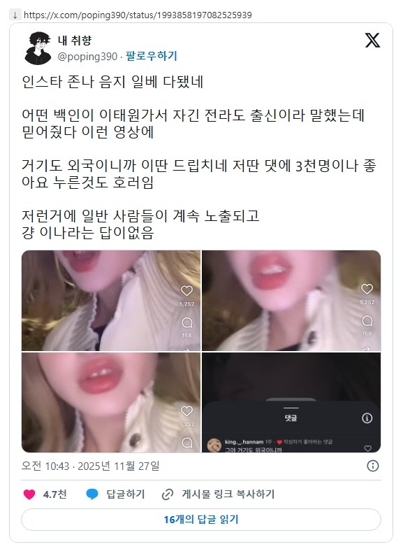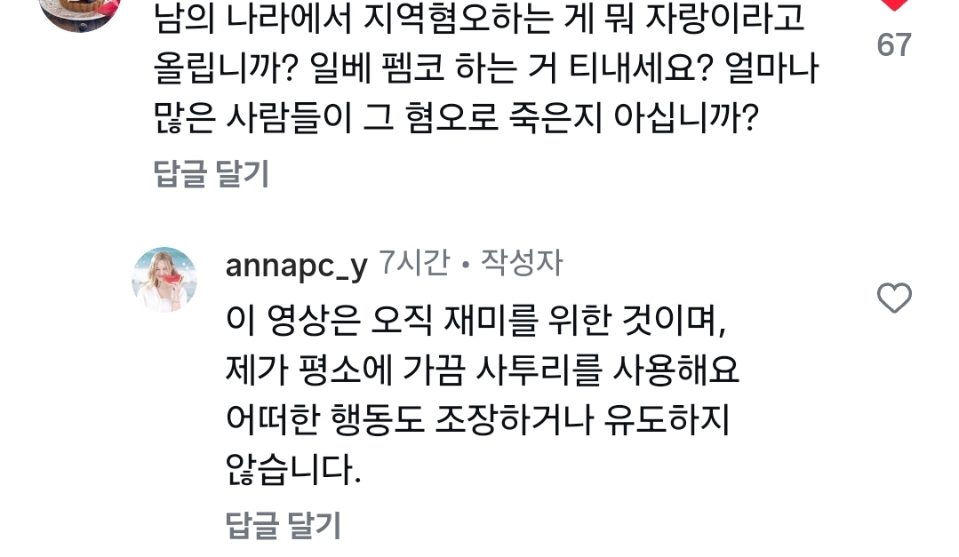 그 릴스에 달린 댓글에 맞아라고 함 (알고서 했단 뜻)