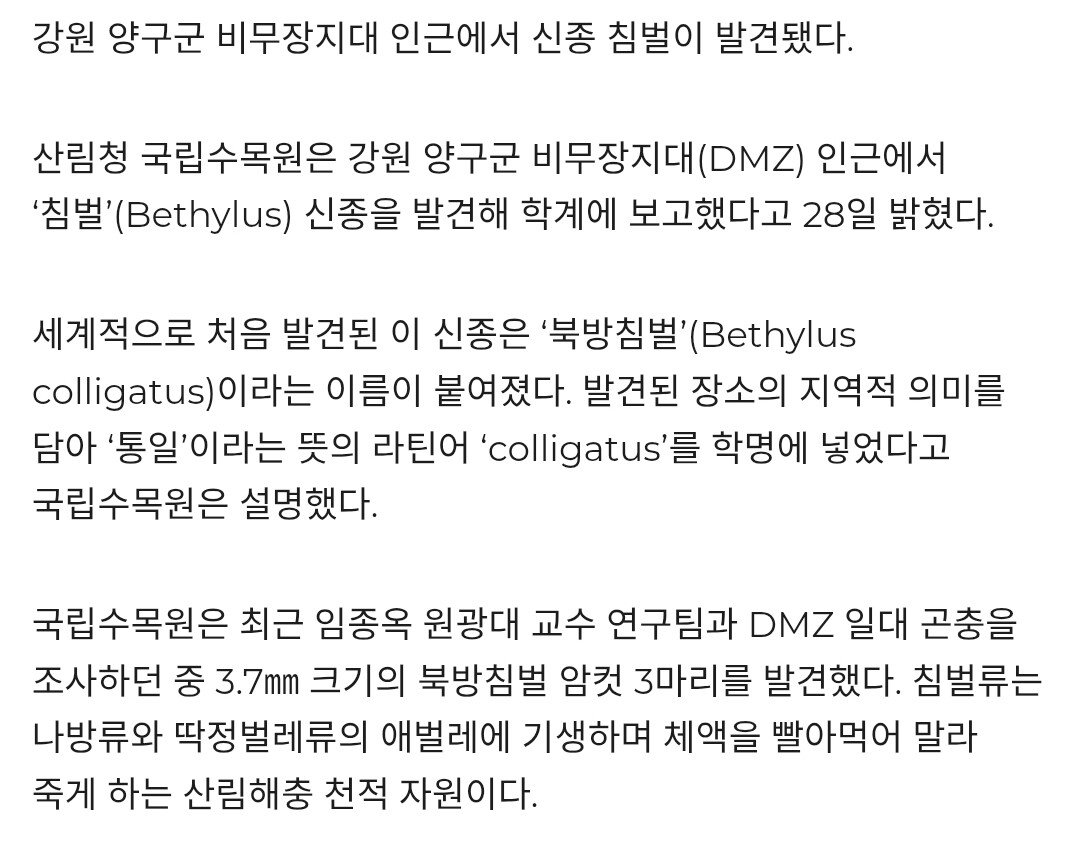 전세계 최초로 비무장지대에서 신종 벌 발견