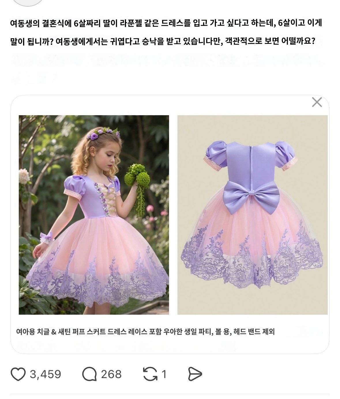 "친척 결혼식에서 아이에게 공주 드레스를 입혀도 되는가?"