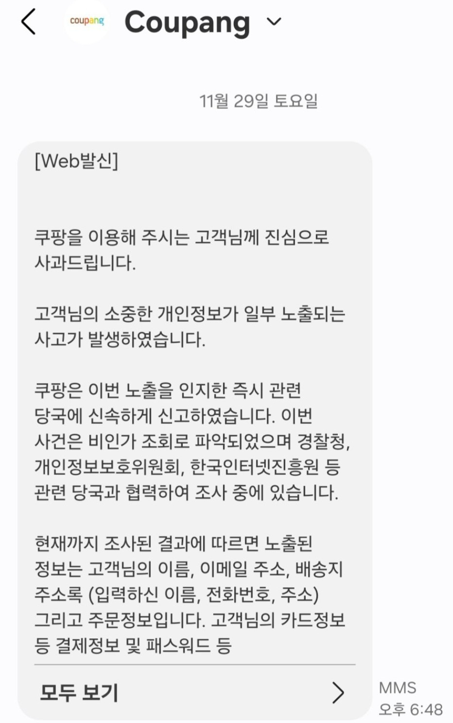 쿠팡, 고객 개인정보 3370만개 무단 노출 확인