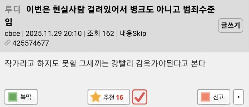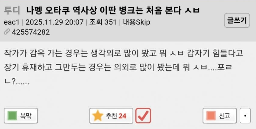 2. 국내 여초 및 트위터에서 작가에 대한 비난을 퍼붓기 시작하며 난리가 남