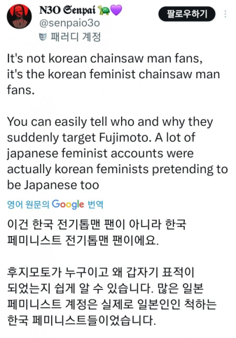 최근 X의 계정의 국적표기 기능이 생긴 후, 한국 페미니스트에 대한 반감이 있는 상황에서