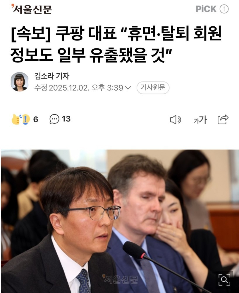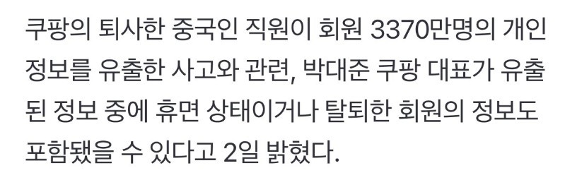 쿠팡 대표 “휴면·탈퇴 회원 정보도 일부 유출됐을 것”
