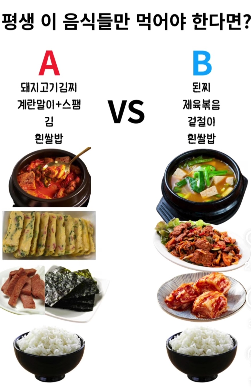 평생 이 음식들만 먹어야 한다면.. A vs B