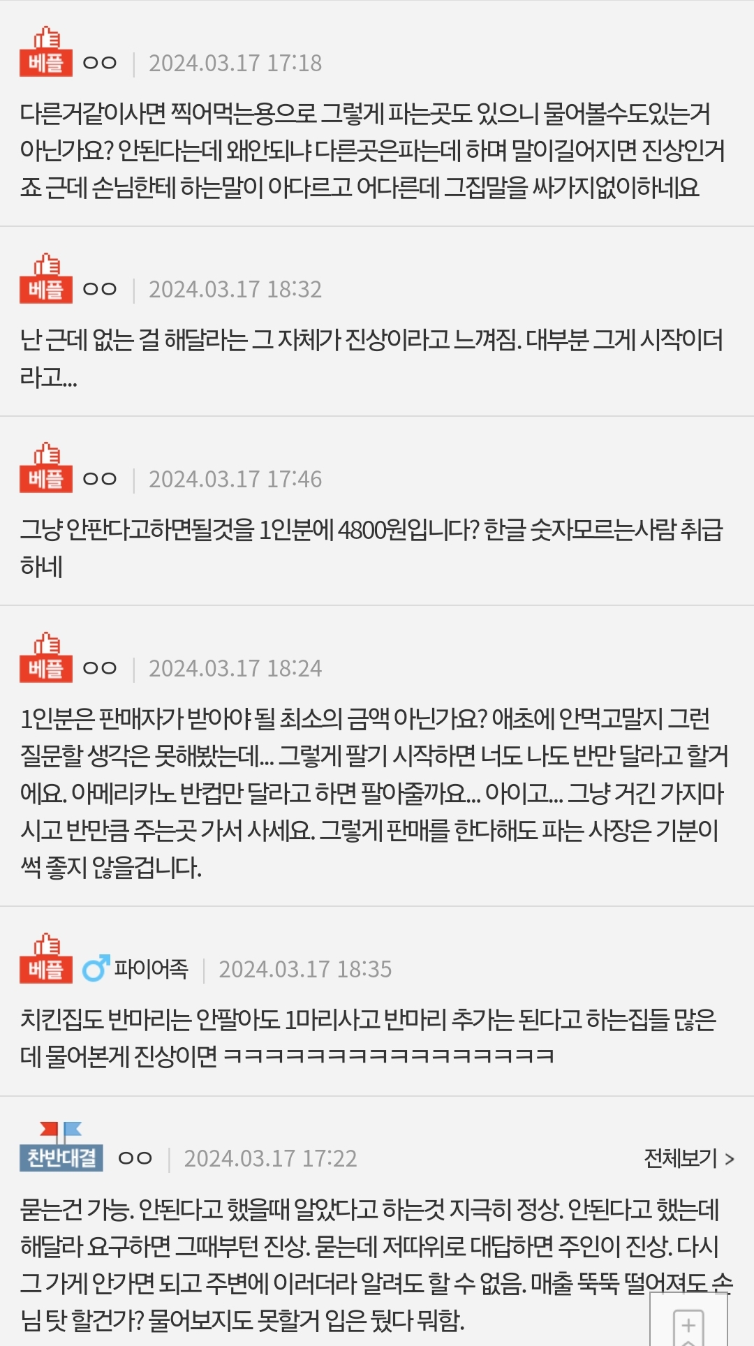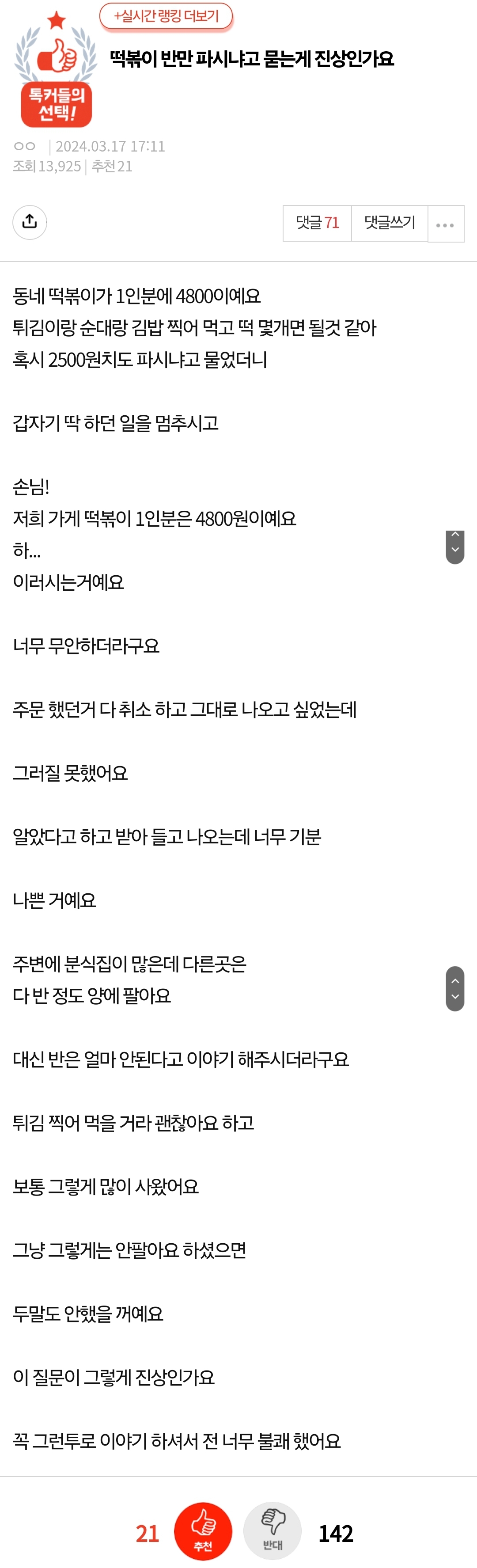 떡볶이 반만 파시냐고 묻는 게 진상인가요