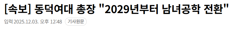 동덕여대 총장 "2029년부터 남녀공학 전환"