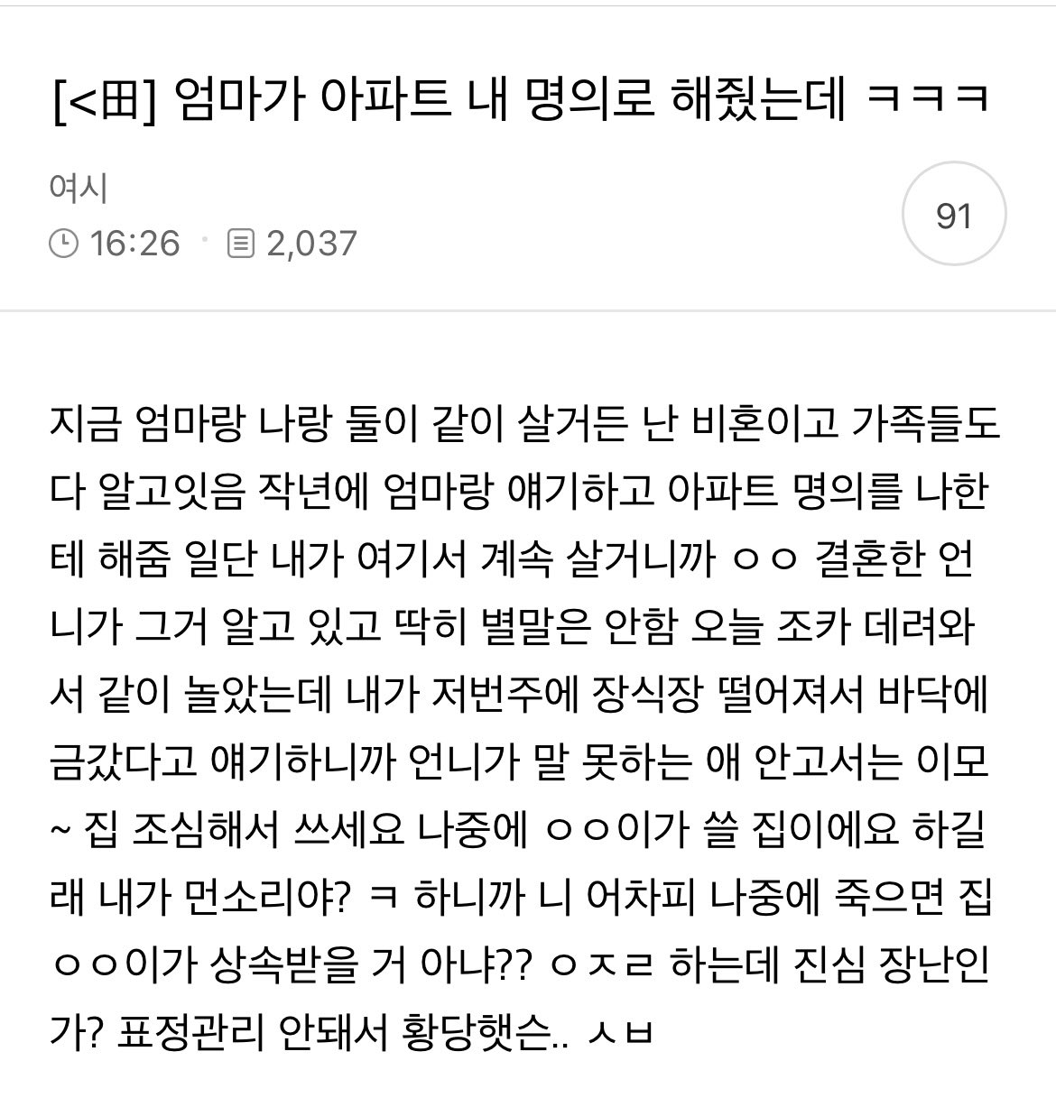 내가 죽으면 조카가 상속받을 집이니 조심해서 쓰라는 언니