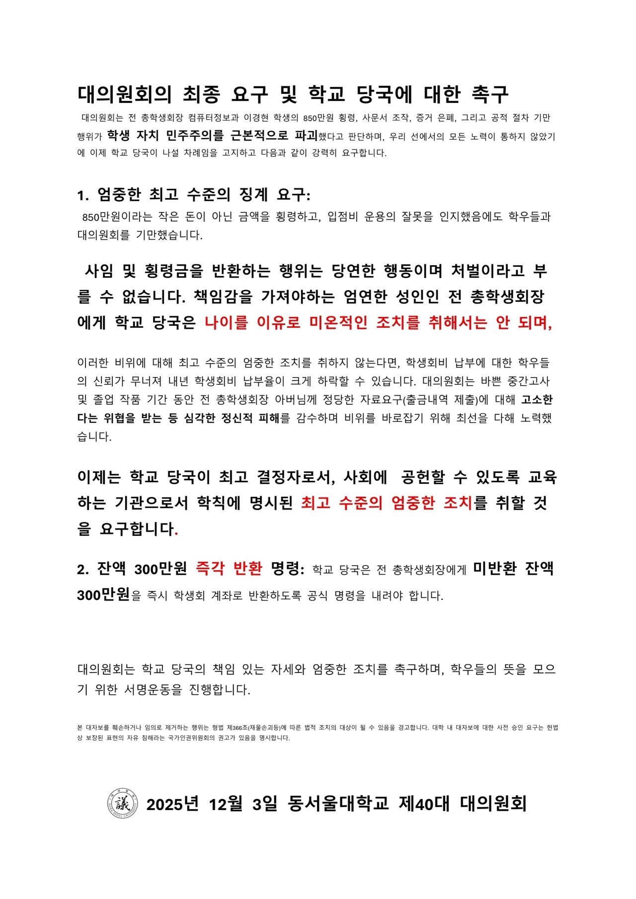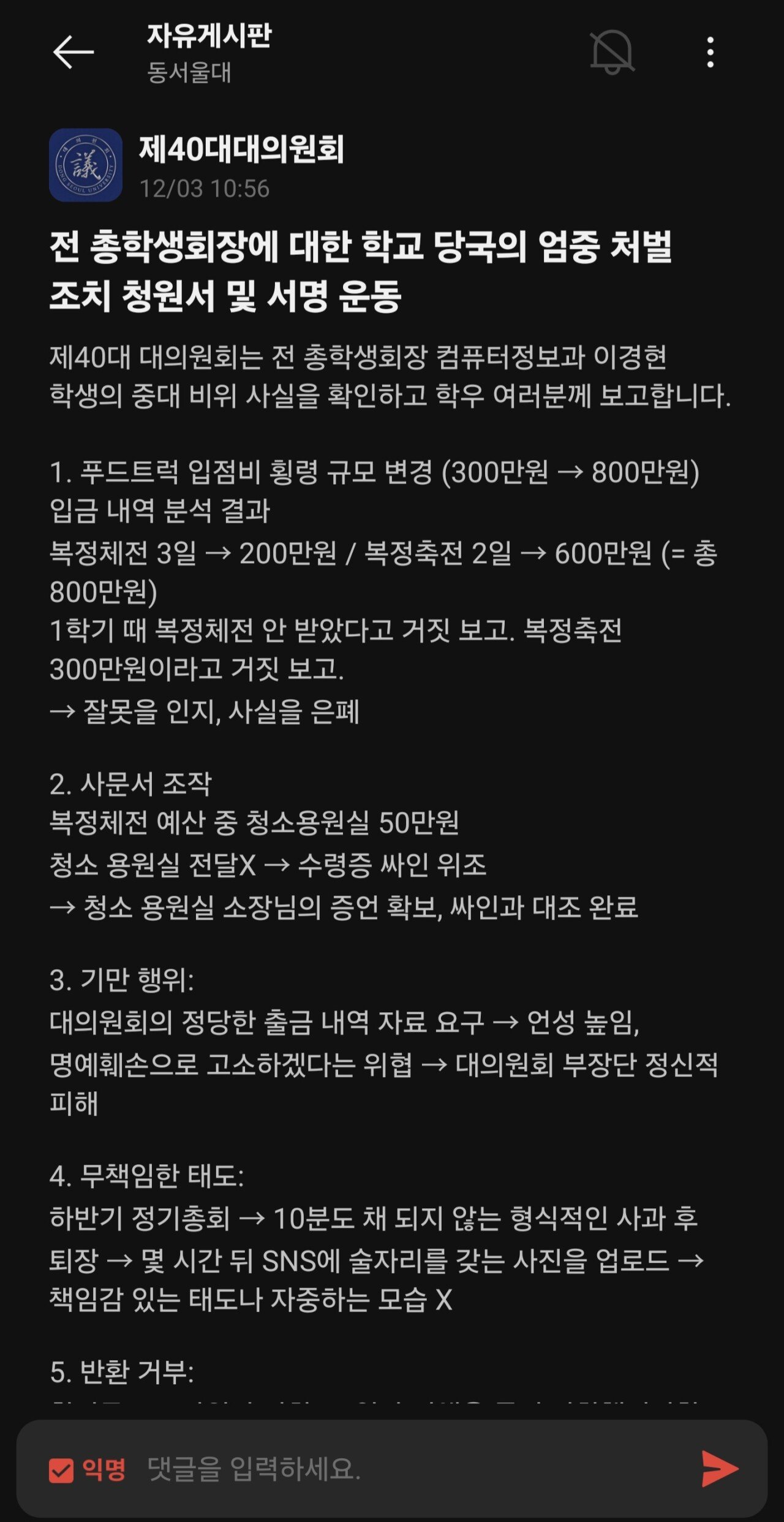 실시간 횡령으로 난리난 전문대