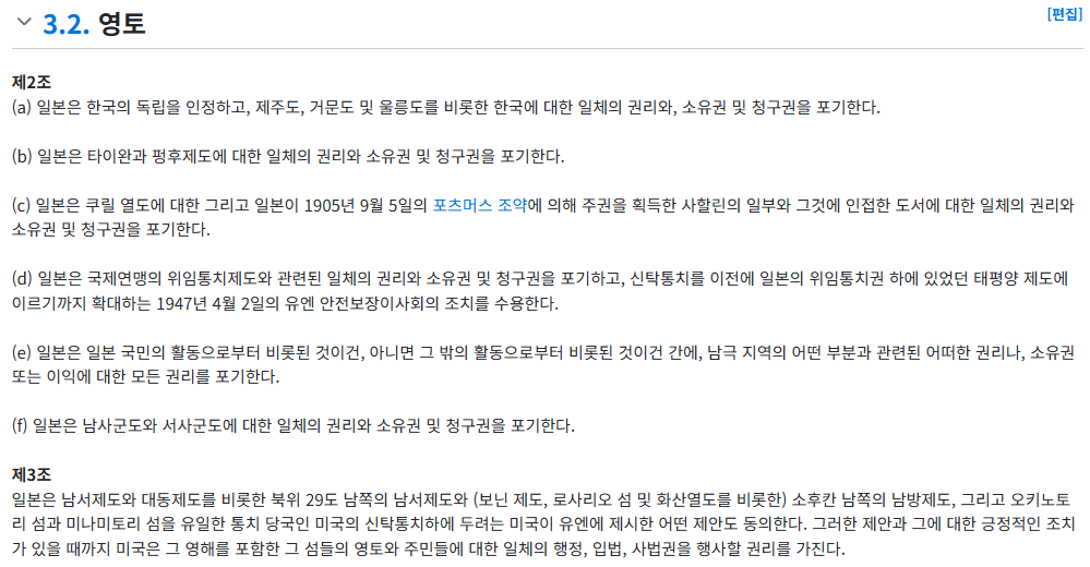 그런데 샌프란시스코 조약 영토 부분을 보면..