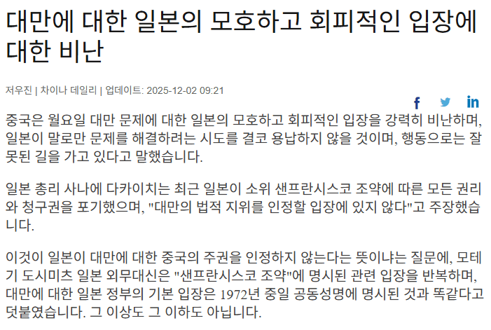 중국은 요즘 갑자기 카이로 선언, 포츠담 선언, 샌프란시스코 조약 등 언급하는데 갑자기 현대 세계사 얘기가 다시 나오네.