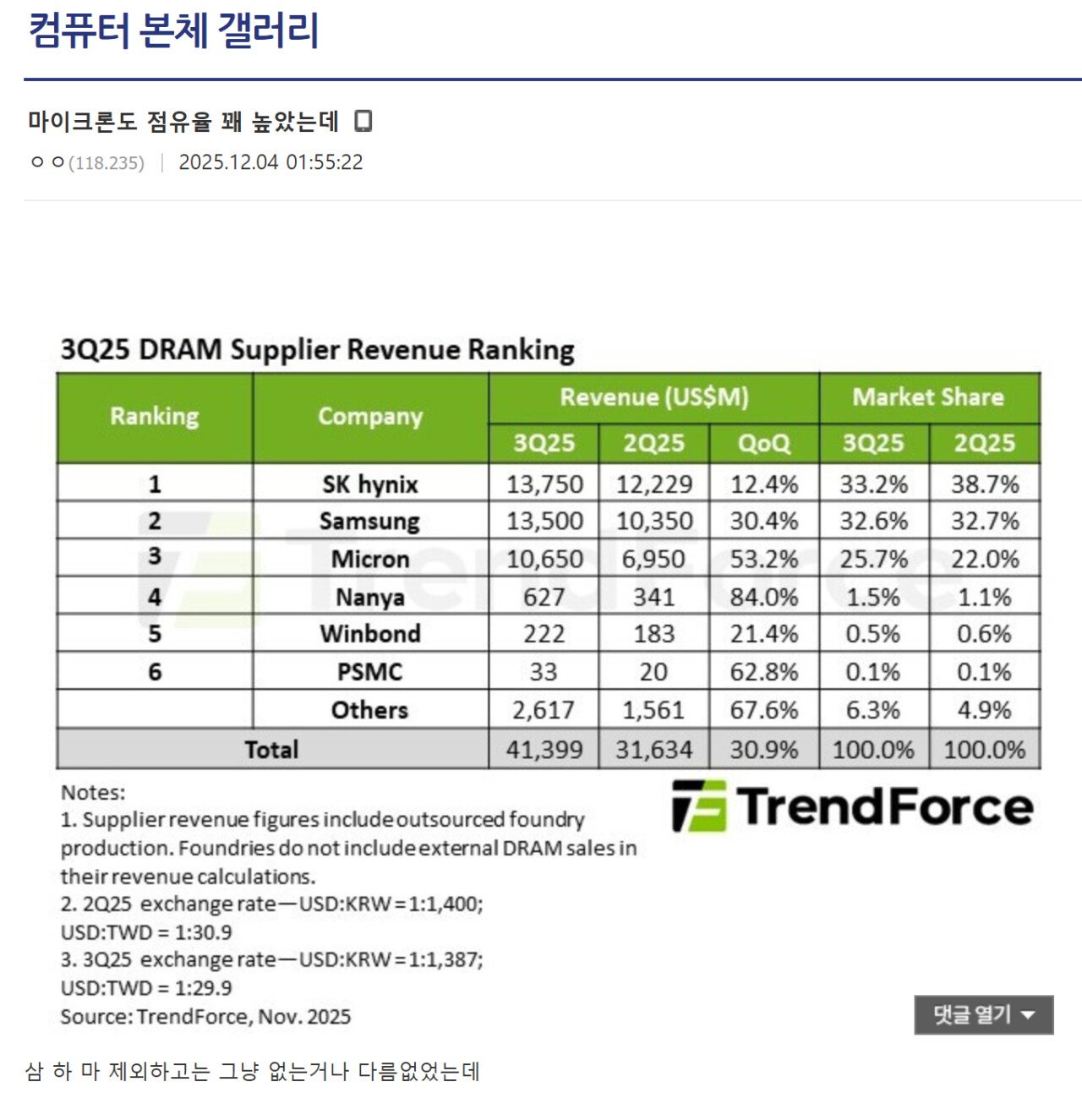 램 3대장 중 하나가 마이크론이라