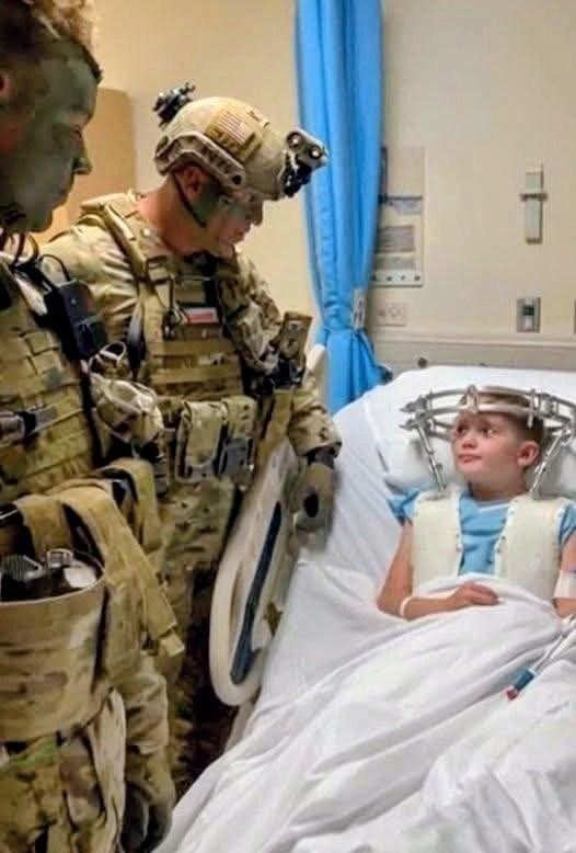 아이는 "군인들을 보고 싶어요, 진짜 영웅을 보고 싶어요" 라고 말했음.