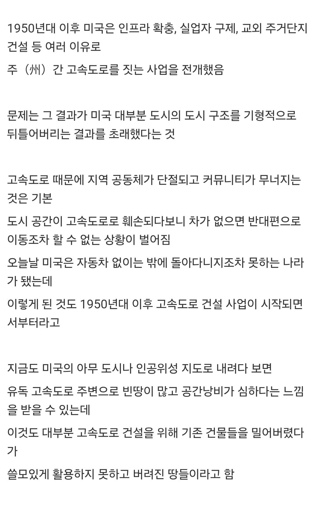 미국의 고속도로 개발 사업 결과
