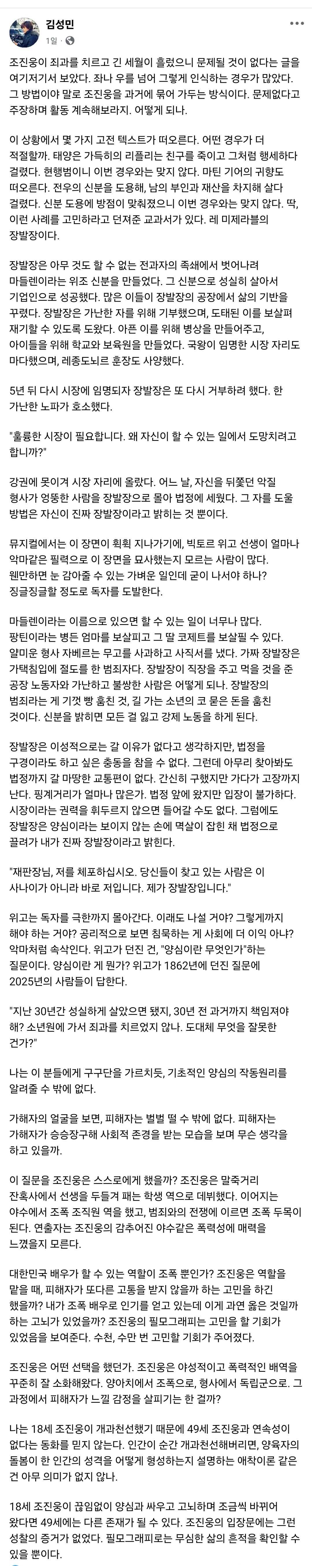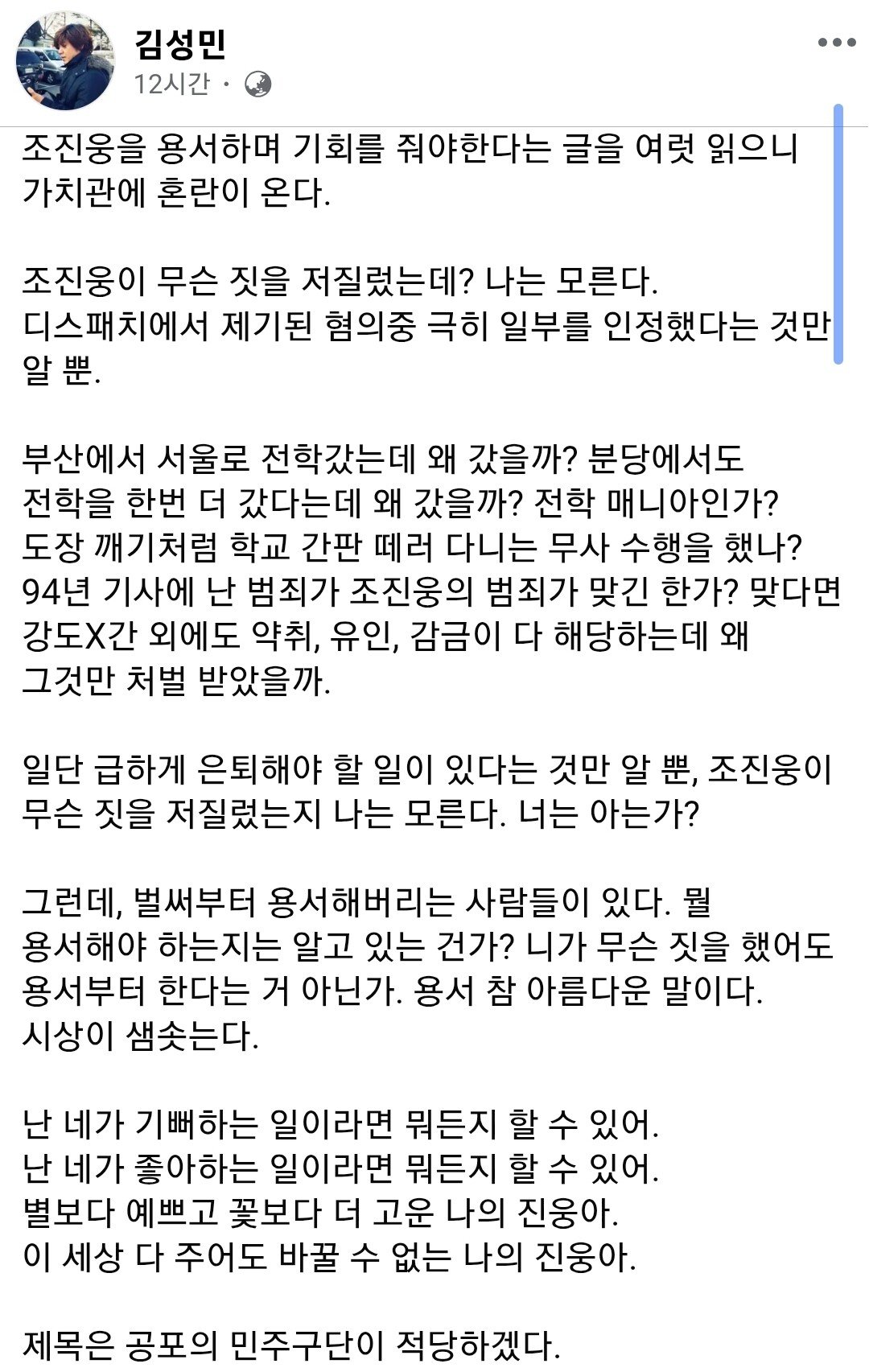 조진웅 쉴드치는 인간들한테 뼈때리는 일침
