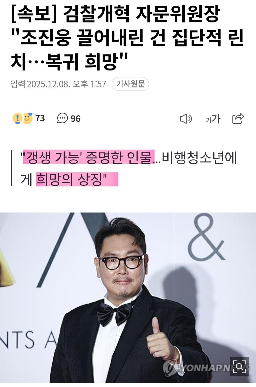 검찰개혁 위원장 "조진웅은 희망의 상징, 복귀해라"