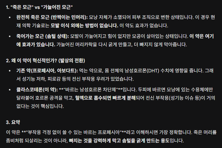 뒤진 모근은 못살림, 약먹으면 죽어가는 모근은 살림