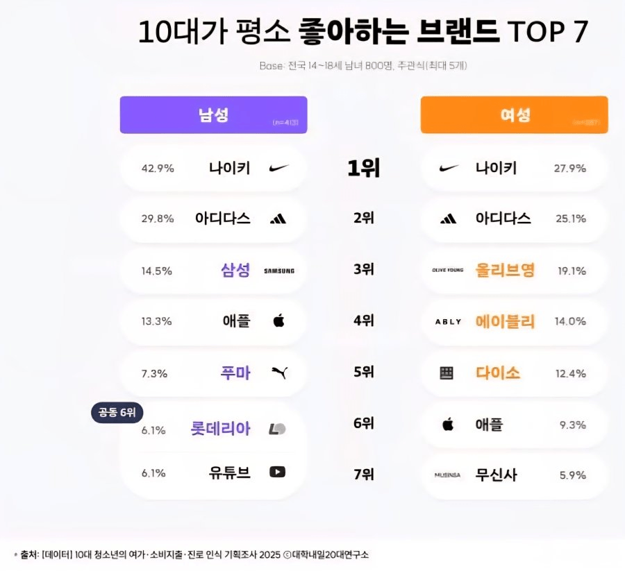 요즘 10대가 평소 좋아하는 브랜드 TOP 7