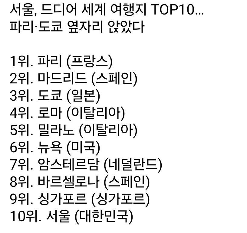 CNN 선정 전세계 매력적인 여행지 TOP 10