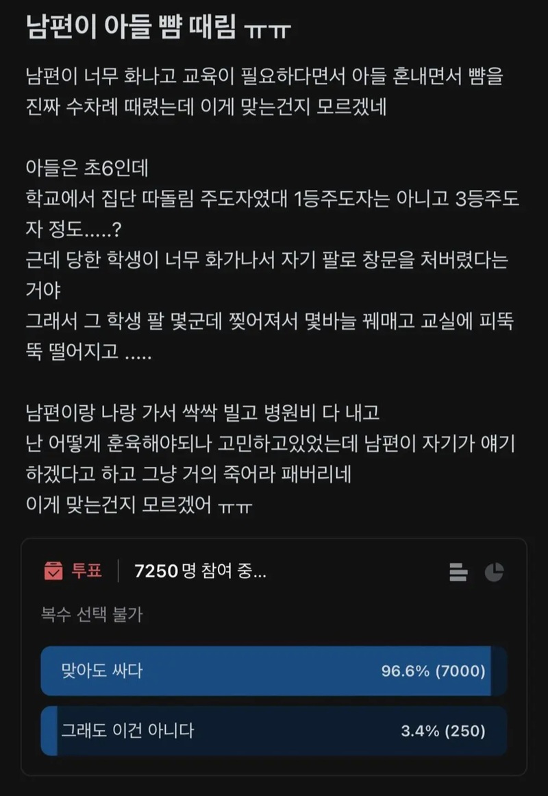 남편이 아들 뺨 때림 ㅠㅠ