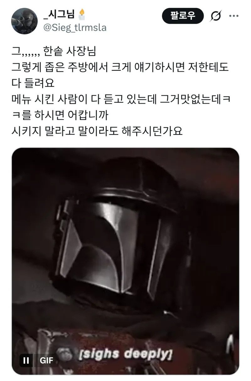 한솥사장 “그거 맛없는데 ㅋㅋ”