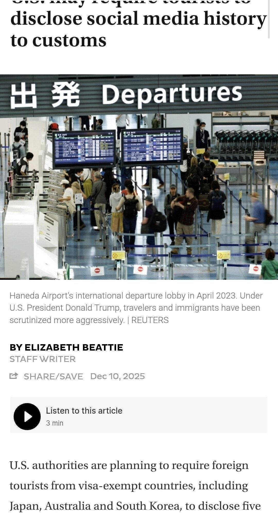 미국 "선진국도 입국시 sns 5년간 내역 제시"